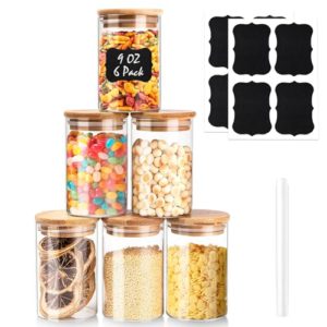 Rogerom 6 Pack Glass Jars with Bamboo Lids 260ml, 9oz Spice Jars with Lids and Labels, Airtight Small Glass Storage Jars Containers for Cereal, Tea, Coffee, Herbs, Seasoning, Sugar