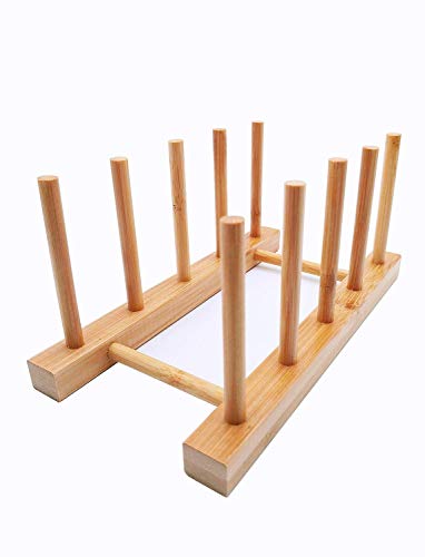 【HOW TO INSTALL?】Unassembled, 4 slots for plates or pot lids,this drying rack comes with 4 pieces parts, the two long racks and two pegs, each rack have two holes. To make sure it will connect each pieces more tighter, When install, twist the pegs into side racks with a little big pressure, then the whole rack will be tight. Please check the size of Bamboo Rack on my pictures before purchase.