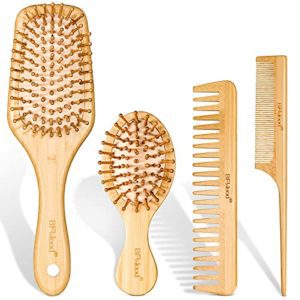 BFWood 4 in 1 Bamboo Hair Brush Set, Eco-Friendly Wooden Hair Brushes and Combs Set for All Types of Hair in Family