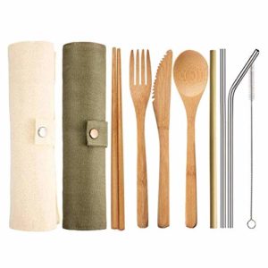 2 Sets Bamboo Cutlery Set, Travel Cutlery Set Bamboo Lunch Set Reusable Flatware Set Camping Cutlery Set Travel Utensils…